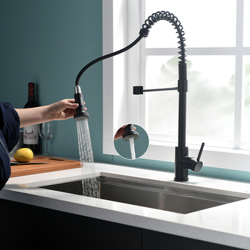 304 SUS thép không gỉ nước nóng và lạnh với Vòi bếp kéo ra trong vòi nước màu đen