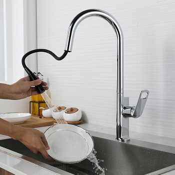 Mạ Pull-out mùa xuân Nhà bếp Vòi vòi nước nóng và lạnh bồn rửa vòi nước bằng thép không gỉ 304 nhà máy